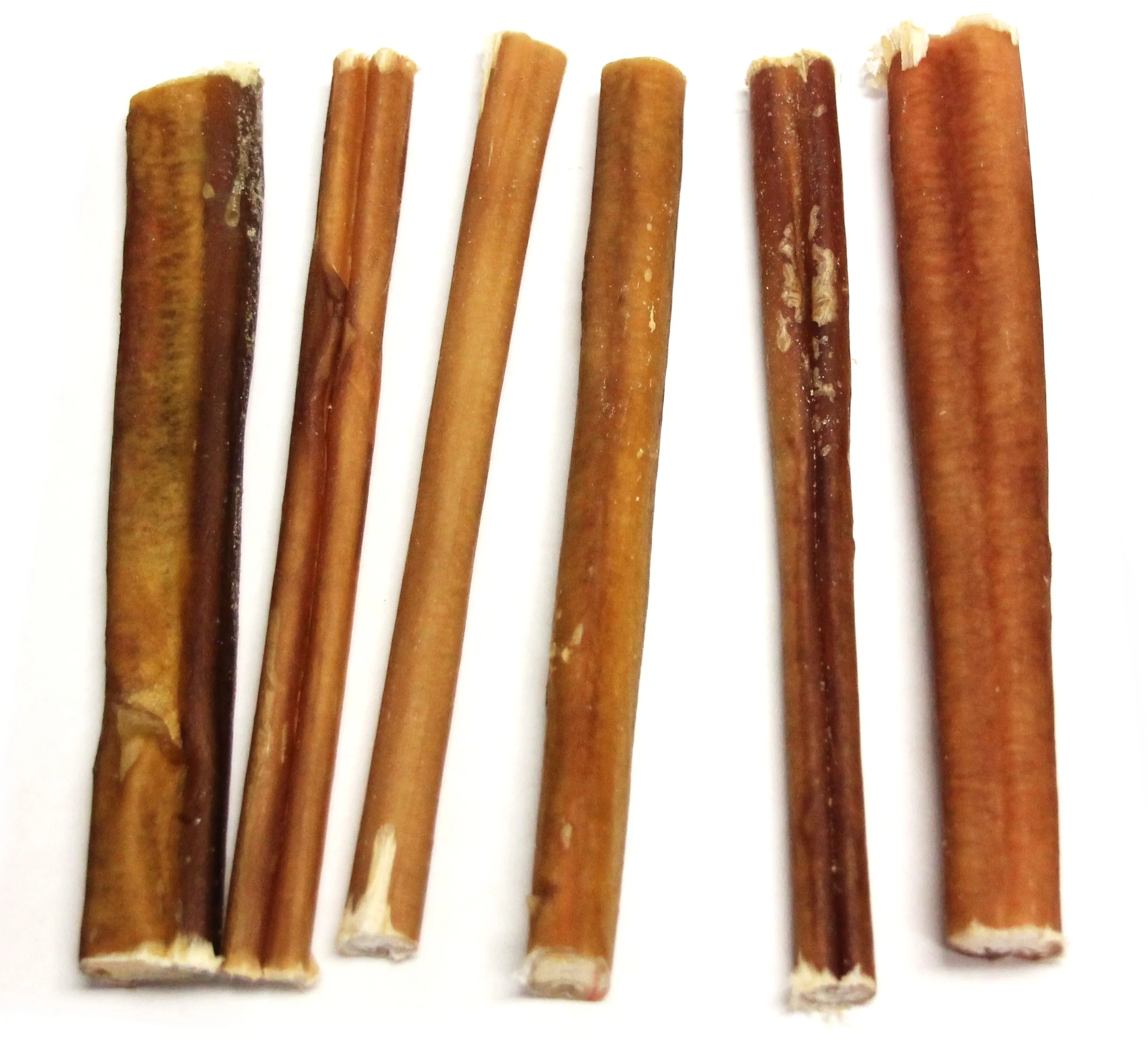 A bully stick is a single ingredient dog chew made of 100% beef. Bully sticks are made from a bull or steer's pizzle. Good Dog Jordie bully sticks are a whopping 30-40 inches long when they finish drying. Most bully sticks are cut down to 6" or 12" long so they can become a manageable dog chew.